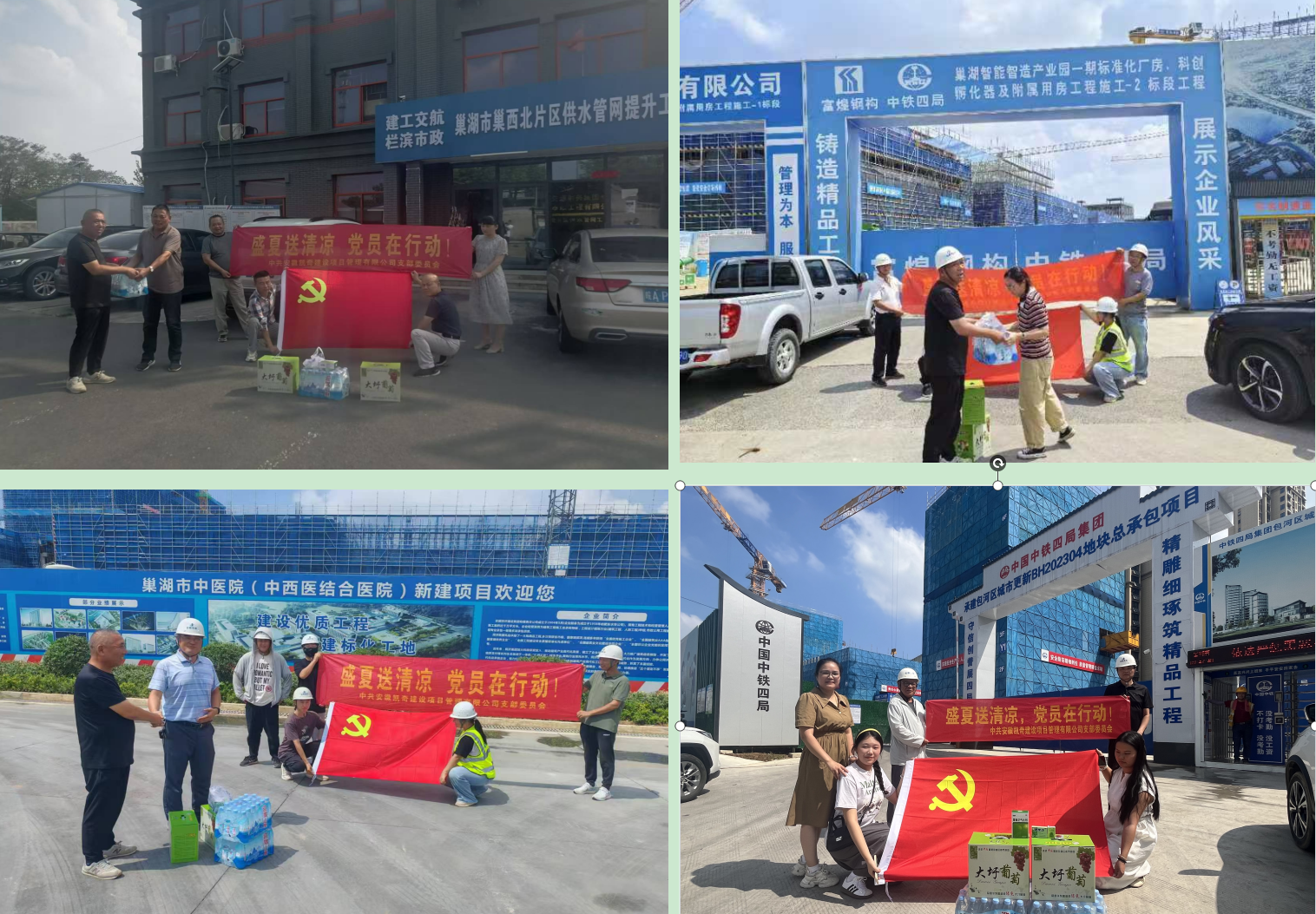 炎炎夏日,骄阳似火。持续的高温天气“烤”验着每一位坚守岗位的一线员工,也牵动着凯奇公司党支部的心。为切实关怀奋战在项目前沿的员工,传递公司“以人为本”的文化理念,增强团队凝聚力和员工归属感,凯奇党支部于8月16日精心组织并成功开展了“盛夏送清凉,党员在行动!”夏日送清凉主题活动,将公司的深切关怀与丝丝清凉送至遍布合肥及巢湖地区的十余个重点项目现场!